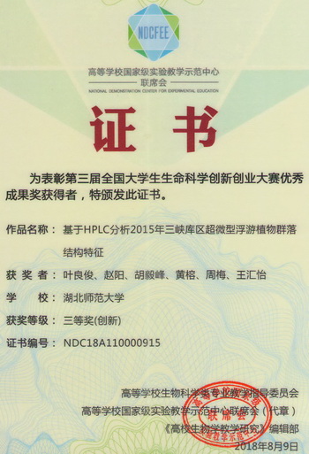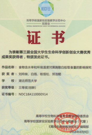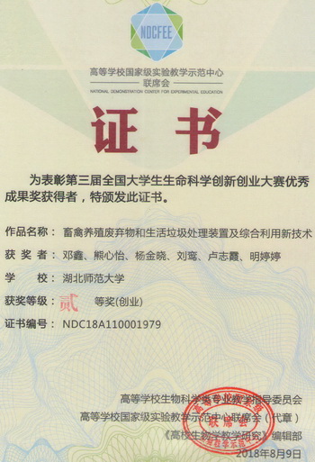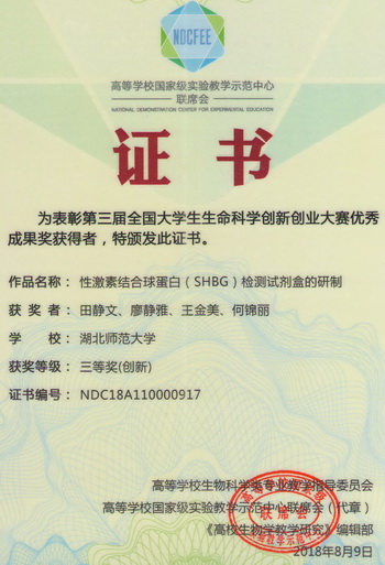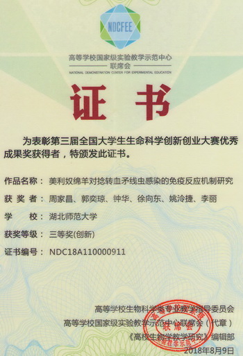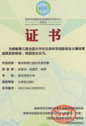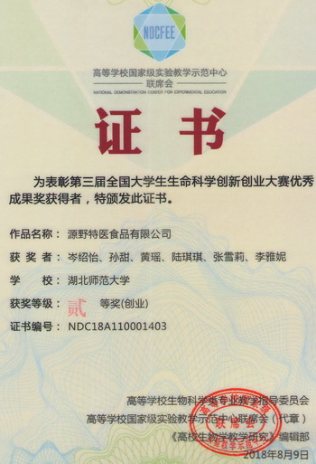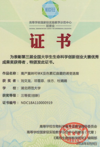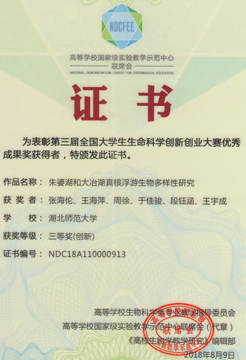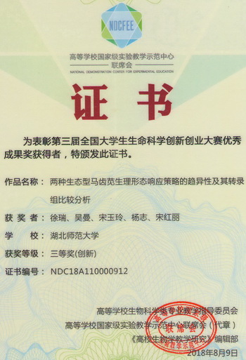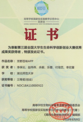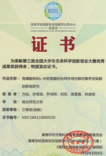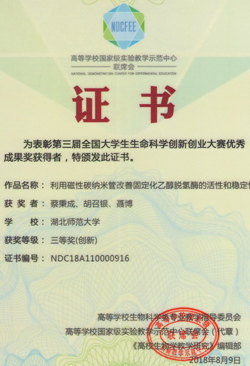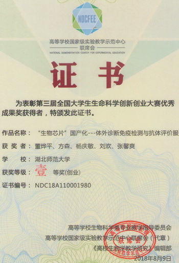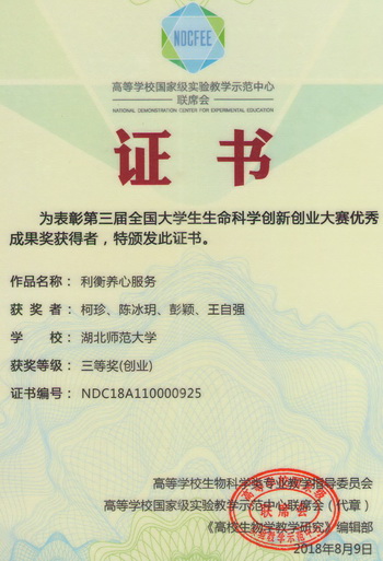 2018全国大学生生命科学创新创业大赛获奖证书(学生)