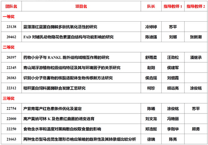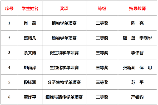 第五届湖北省大学生生物实验技能竞赛获奖名单