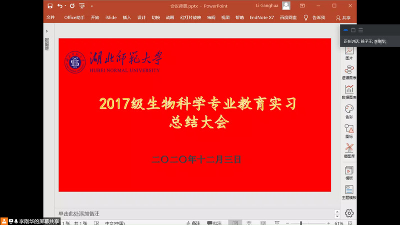 2020年12月3日晚上19时30分,6686成功开展2017级生物科学专业教育实习总结大会。参与此次大会的有6686副院长陈亮、实习单位指导老师甄欢以及实习指导老师汪劲松。