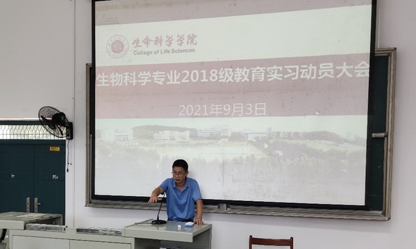 为顺利开展生物科学专业教育实习工作,引导师范生进一步明确实习内容和要求,9月3日上午九点,我院2021年教育实习动员大会在8J21报告厅举行。副院长陈亮,实习带队指导教师江涓、顾勇、严镇钧,2018级班主任董昌金、邱昌恩、徐平以及生物科学专业全体实习生参加了此次活动。会议由生物科学教研室主任李刚华主持。