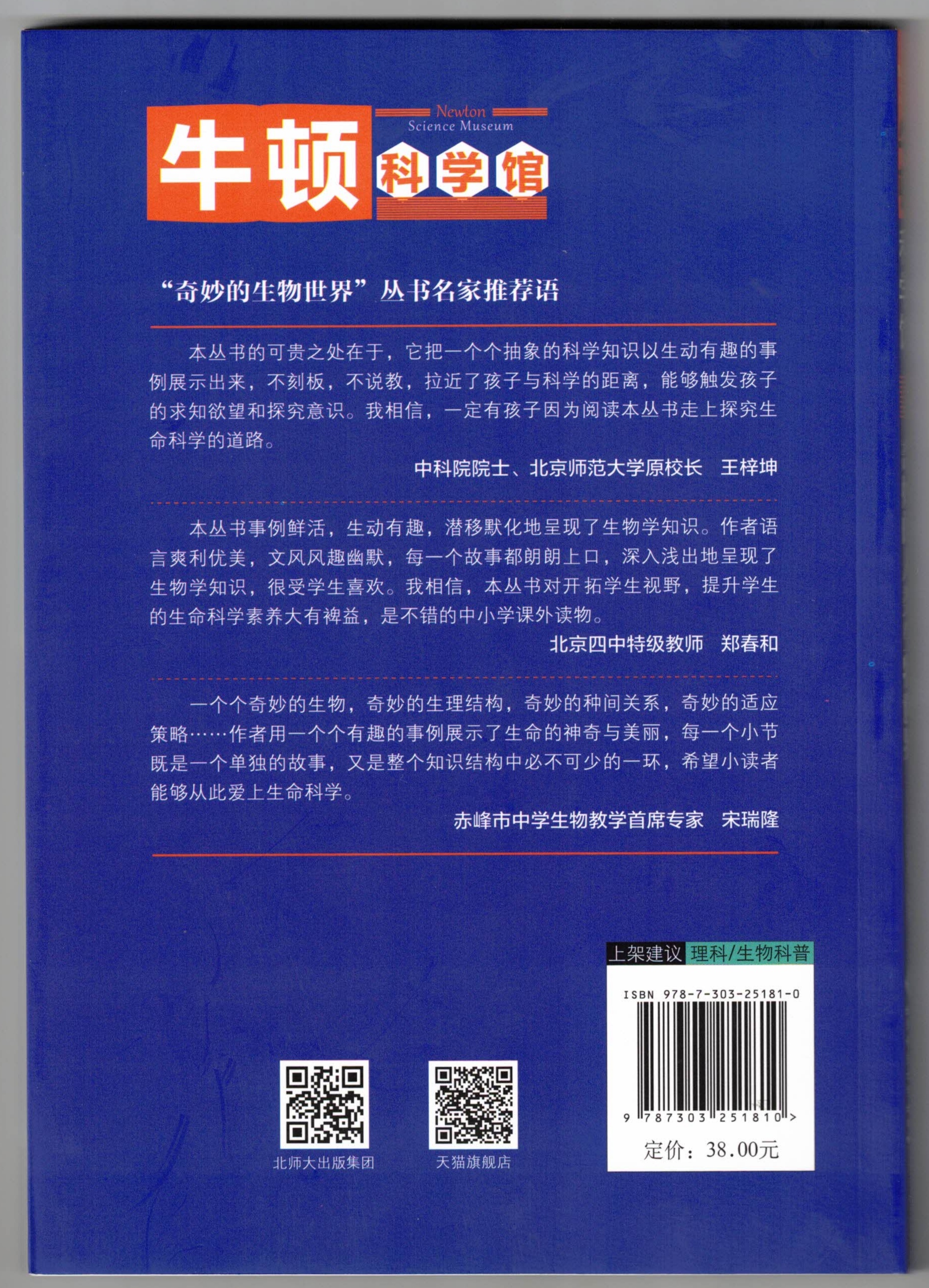 子曰:好之者不如乐之者。当一个人对某种学问产生了兴趣,就能沉在其中,乐在其中,成在其中。希望阅读这套书的小读者能了解一些常用的生物学知识,从此对生物学产生浓厚的兴趣,长期坚持下去,将兴趣上升为热爱,将热爱转化为知识,将知识演化成幸福。