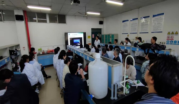 2022年4月19日下午,生物技术教研室在8105实验室组织开展了教学示范观摩课活动。本次示范课由夏险博士主讲,教学内容为《微生物学实验》的实验七——硒还原微生物的分离鉴定。学院领导、教学督导和生物技术教研室全体教师参加活动。