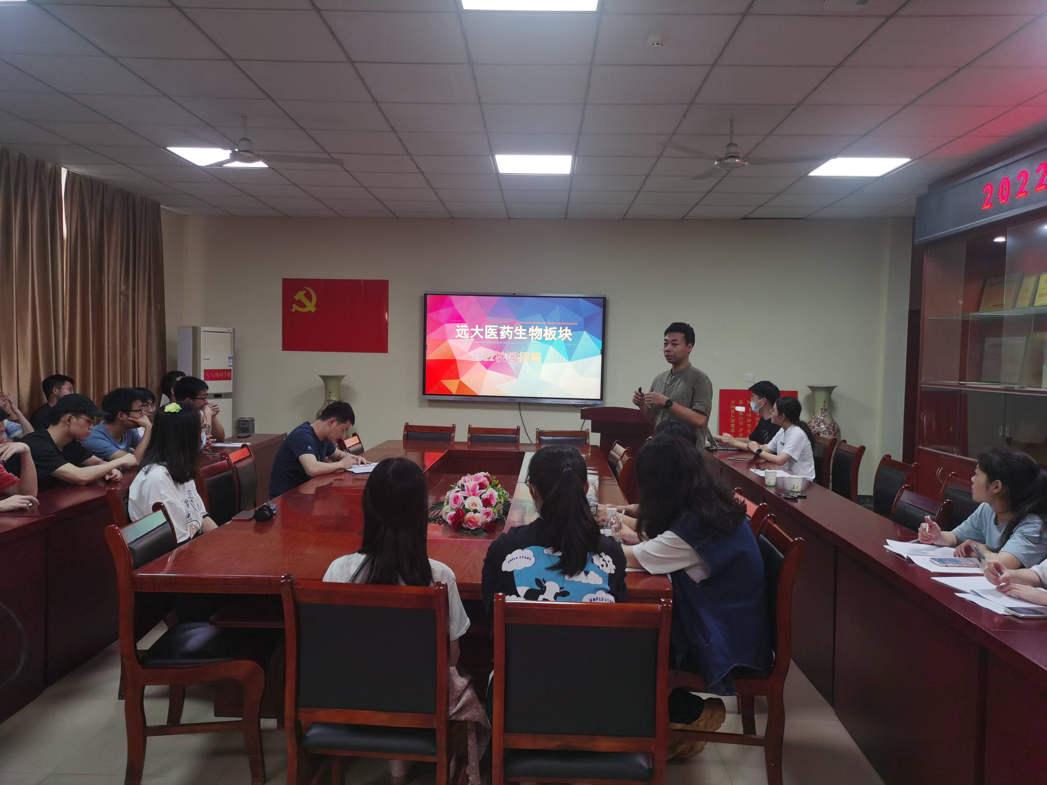 为了促进2022届毕业生就业,提升学生就业质量,我院于5月18日14时30分在8306会议室举办2022届毕业生专场招聘活动。辅导员李冬、张良,黄石人才工作人员,远大医药中国有限公司、劲牌有限公司人事专员以及18级部分毕业生参与活动。活动由学院辅导员张良老师主持。