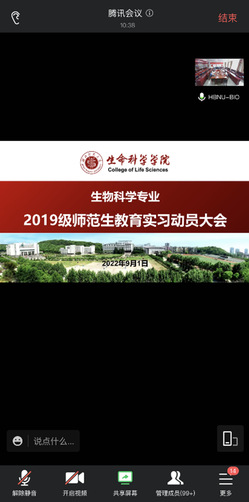 2022年9月1日下午,我院召开了“新疫情形势下2019级生物科学专业教育实习动员大会(线上)”。学院党委书记陈雄文,实习指导教师江涓、席德强、顾勇和张润锋,2019级生物科学专业班主任夏险、熊雨飞以及全体学生参加会议。会议由副院长陈亮主持。