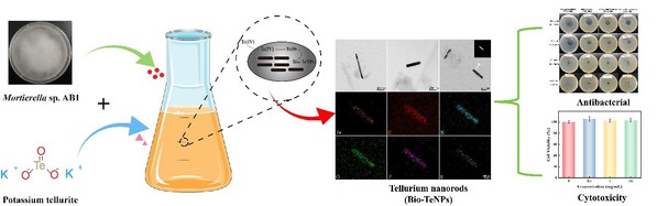 近日,我院与湖北省疾病预防控制中心联合在国际期刊《Frontiers in Microbiology》(中科院二区TOP期刊,IF:6.0644)在线发表题为“Green synthesis of Bio-TeNPs by high Te(IV) tolerance fungus Mortierella sp. AB1 with antibacterial activity”的研究论文。夏险副教授为通讯作者,我院硕士研究生敖波,湖北省疾病预防与控制中心何飞、吕静为共同第一作者,6686体育为第一单位。