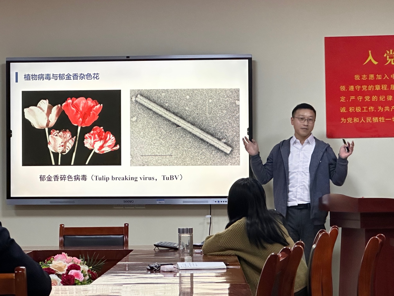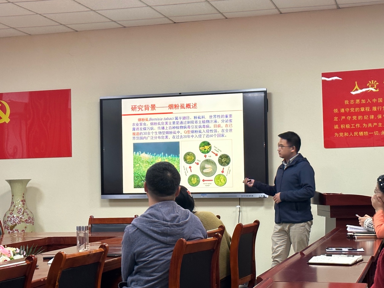 曾阳作了题为《化学感受蛋白BtabCSP12在烟粉虱产卵调控中的作用机制》的学术报告,让师生了解到烟粉虱对于植物及自然环境的危害,在座领导、老师表示其研究意义深刻、研究方法得当。