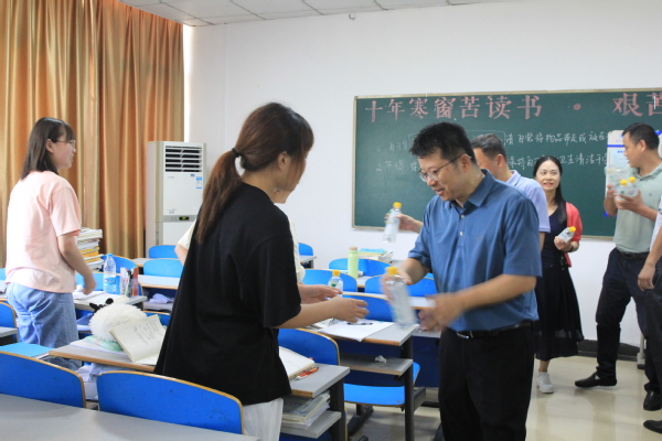 在生科院学生自习室,校领导实地了解暑期留校党员学生考研复习的情况,为学生们送上防暑降温慰问品,并向经济困难学生赠送慰问卡,同时,勉励同学们珍惜时光、劳逸结合、努力学习。