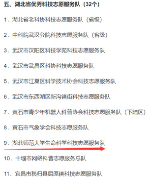 2023年1月11日,根据湖北省科协《关于公布2023年湖北省特色产业科普基地和基层科普服务能力提升行动计划项目的通知》,我院“生命科学科技志愿服务队”被评定为湖北省优秀科技志愿服务队。据悉,本次共评审出湖北省优秀科技志愿服务队32个,“生命科学科技志愿服务队”是唯一获批高校团队。