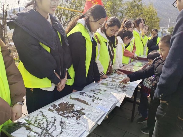 时值周末,天朗气清,景色宜人,很多人前往湿地公园踏青赏梅。生命科学科技志愿服务队的到来,更是让湿地公园增添了科学与知识的氛围。队员们展示动植物标本,为人们讲解、科普生物知识,游人们被队员的精彩讲解吸引纷纷驻足观看。在一上午的时间里,参观人员众多,大多数是家长带着小朋友来的。小朋友们好奇心强烈,对昆虫十分感兴趣,讲解员有针对性地进行了重点讲解。