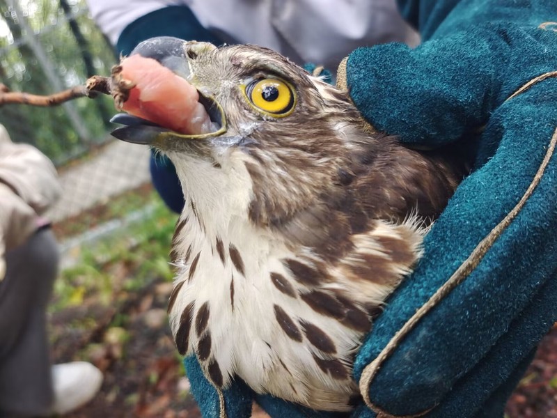 凤头鹰为国家二级保护动物,由黄石市民罗先生于4月3日移送中心。该鸟体长约36cm,为亚成体雄鸟。经救护中心主任支立峰副教授全面检查,没有发现明显外伤,精神状态良好,中心为其准备了新鲜猪肉,进食情况正常。