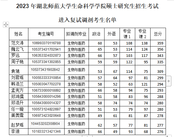 根据教育部关于印发《2023年全国硕士研究生招生工作管理规定》(教学函〔2022〕3号)的通知等文件精神,根据我院调剂原则及要求,现将2023年6686体育生命科学学院硕士研究生招生考试进入复试调剂考生名单公示如下。考生若有疑问,可向我校有关部门反映。