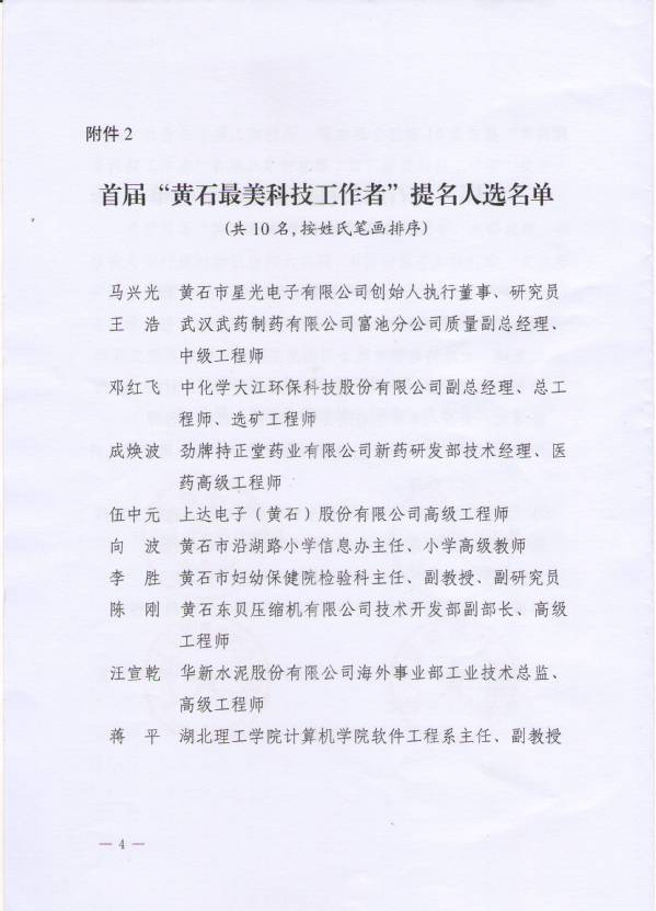 据悉,今年市科协联合市委宣传部、市科技局、市人社局组织开展“黄石最美科技工作者”评选活动,这也是黄石市首次开展“最美”系列科技工作者评选活动。经社会各界踊跃推荐,43名来自全市重点产业链头部企业、医疗卫生领域、科技领域、教育领域、农业农村领域的优秀科技工作者积极报名,经过两轮评审、面向社会公示等环节,最终评选出10名“黄石最美科技工作者”。