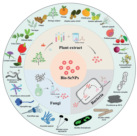 生物纳米抗菌剂具有显著的抗菌和食品防腐特性,近年来,生物纳米材料在食品中的应用备受关注,食品和农业中的纳米技术正在迅速成为商业现实,纳米材料已被用于改善食品供应的安全、质量、健康和可持续性。在包装中使用纳米材料可以抑制微生物生长,从而延长易腐食品的保质期并提高安全性,并防止运输、储存和展示过程中的污染。生物纳米材料受益于可再生性和较低的毒性,并且具有用于食品保鲜和包装材料的环保优势,从而引起了研究人员的浓厚兴趣。有效控制食源性病原体污染是食品行业面临的重大挑战,但是,新型抗菌纳米技术的发展为此提供了新的机遇。在本综述中,我们介绍了(1)不同来源(植物提取物、真菌和细菌)合成的生物硒纳米及其对食源性病原菌的抗菌活性;(2)生物硒纳米的抗菌机制,包括穿透细胞壁、破坏细胞膜和内容物泄漏、抑制生物膜形成和诱导氧化反应;(3)生物硒纳米作为食品包装材料、食品添加剂以及农作物/动物的肥料/饲料在食品行业中潜在的抗菌应用;(4)生物硒纳米的细胞毒性和动物毒性。相关知识有助于提高我们对生物纳米粒子应用的认识,并为确保食品安全做出宝贵贡献。