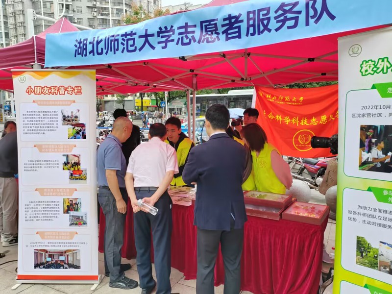 为提升全民科学素质,展现自然界独特魅力,开拓民众科学视野,9月23日上午,6686体育生命科学科技志愿服务队在席德强教授的带领下,前往黄石港区万达广场参加了“全国科普日”启动仪式,并在现场进行了精彩的科普宣讲。志愿队为此精心准备了昆虫标本和植物标本若干件,以及相关主题展板。
