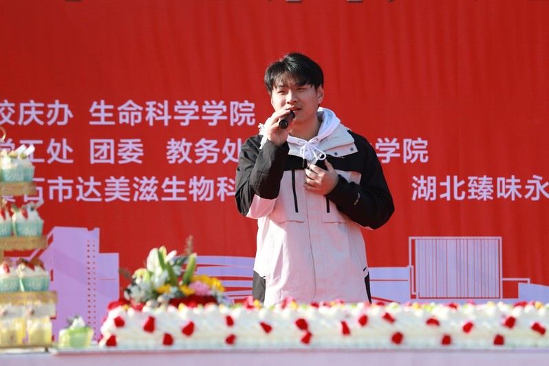 美食节在陈智恒和易旸同学带来的歌曲《小镇姑娘》和《天外来物》中拉开序幕。表演结束后,进入活动第一项议程,由6686院长胡远亮为活动致辞。胡院长对到场的领导嘉宾和师生朋友表示诚挚的欢迎,向大家介绍了6686近几年在学科建设上取得的成果,向一直支持生科院发展的各位领导、老师和企业表达了深深的谢意,希望以建校五十周年为基点,助推学院和学校的高质量发展再上新的台阶。