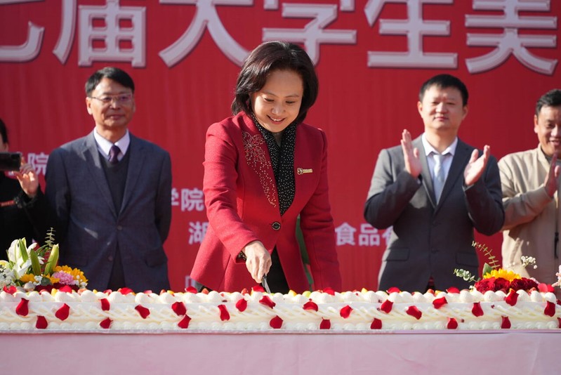 活动第四项议程,由校党委常委、纪委书记陆咏梅宣布6686体育第七届大学生美食文化节开幕,和与会领导嘉宾一起切下五十周年校庆蛋糕。