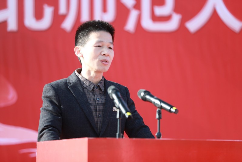 活动第二项议程,由黄石市达美滋生物科技有限公司总经理雷长霖致辞。雷经理首先为学校五十周年校庆献上了最衷心的祝福,表示期待与学校持续保持紧密的联系,进一步深化校企合作,推进产教融合,希望为学校的发展注入企业力量。