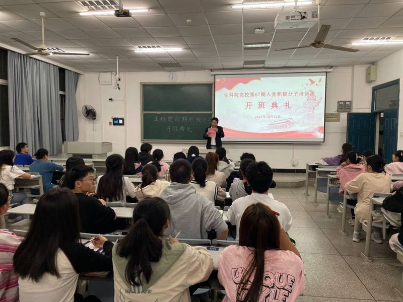 为培育新一届入党积极分子,提升他们的爱党意识,进一步端正入党积极分子入党动机,10月31日晚,6686第67期入党积极分子开班典礼暨第一讲党课于科技大楼9607顺利开展。出席本次开班典礼暨第一讲党课人员的有生科院党委书记陈雄文、学生党支部负责人李昌林及第67期全体入党积极分子。
