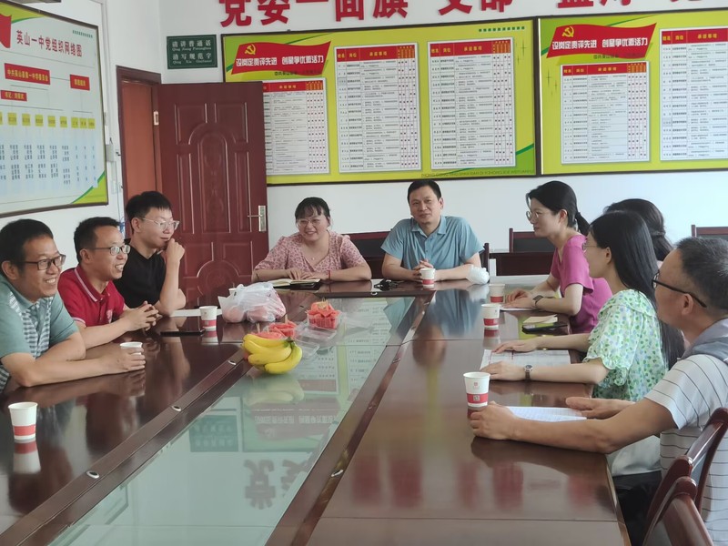 与英山县第一中学教师交谈