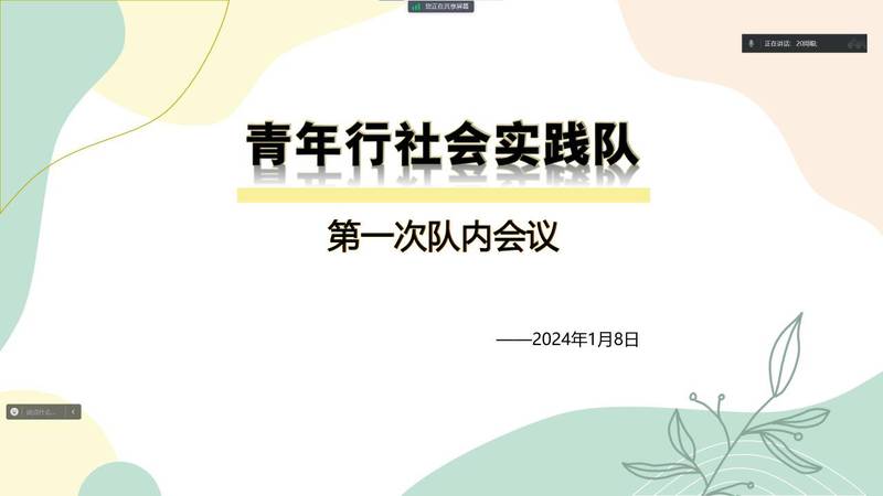 为增强团队凝聚力,加强团队成员之间的协作能力,1月8日晚,青年行社会实践队于线上开展了第一次工作会议。本次会议由队长王方思主持,青年行实践队全体队员参加。