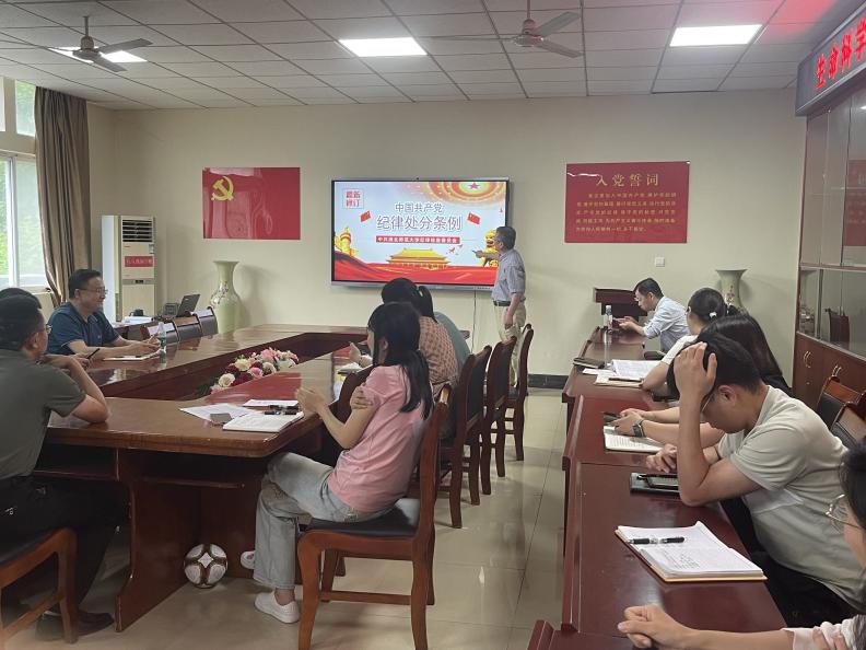 活动中,全体党员教师及时跟进学习习近平总书记的最新系列重要讲话精神。通过集中学习,党员教师们深刻领会了新时代党的创新理论成果,进一步坚定了理想信念,增强了“四个意识”,坚定了“四个自信”,做到了“两个维护”。会议鼓励全体党员教师要将学习成果转化为推动学院科研教学工作的强大动力,为实现中华民族伟大复兴贡献力量。此外,生科院党委深入开展了党纪学习教育活动全体党员教师通过系统学习《中国共产党纪律处分条例》等党内法规,结合典型案例分析对党的纪律规矩有了更加清晰的认识。会议通过学习并要求广大党员要认真贯彻落实党史学习教育工作条例教育引导党员学史明理、学史增信、学史崇德、学史力行。会议最后,为提升党员的法治意识和安全意识,党员教师们同时还学习了《湖北省平安建设条例》深入了解了平安建设的重要性和具体要求此次主题党日活动不仅加深了党员对党的理论和纪律的认识,更激发了大家投身科研教学和社会服务的热情。