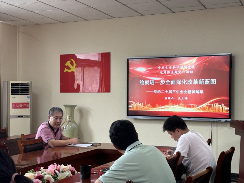 会上,首先进行现场交纳党费、重温入党誓词和集体诵读党章等规定动作。本次活动的一项重要内容是深入学习宣传贯彻党的二十届三中全会精神,为引导党员干部深入理解、全面把握全会精神,支立峰以绘就进一步全面深化改革新蓝图为题对全会精神进行了深入解读,要求每位党员把学习好、宣传好、贯彻好党的二十届三中全会精神作为当前和今后一个时期的重要政治任务随后,支部纪检委员刘娜领学了《严明纪律把党锻造得更加坚强有力——全党开展党纪学习教育综述》,并对党纪学习教育进行了小结,要求广大党员干部努力做到学纪、知纪、明纪、守纪会上进行了大力弘扬教育家精神的主旨宣传活动学院党委书记陈雄文同志解读了《中共中央国务院关于弘扬教育家精神加强新时代高素质专业化教师队伍建设的意见》,陈书记指出学院要用实际行动贯彻新时代党的教育方针,践行为党育人 为国育才的初心使命,在师范生培养上不断探索,为加快教育现代化、建设教育强国、办好人民满意的教育提供坚强支撑。