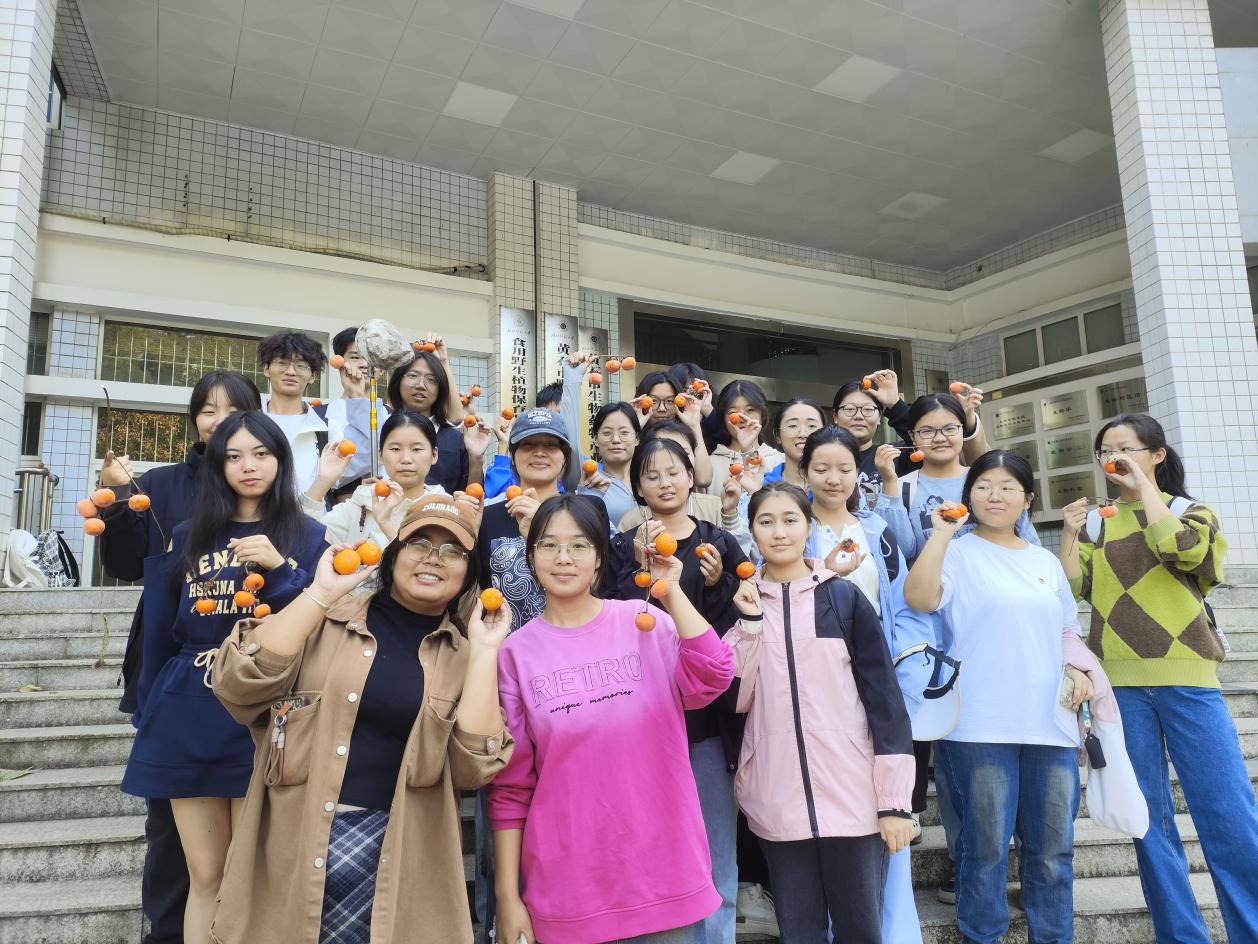 讲解结束后,在辅导员老师的精心组织下,同学们满怀期待地投身于柿子采摘活动中。他们或手持采摘器,或借助梯子和竹竿,兴致勃勃地采摘着挂满枝头的果实,在享受秋收喜悦的同时,也深刻体会到了劳动的价值与意义。