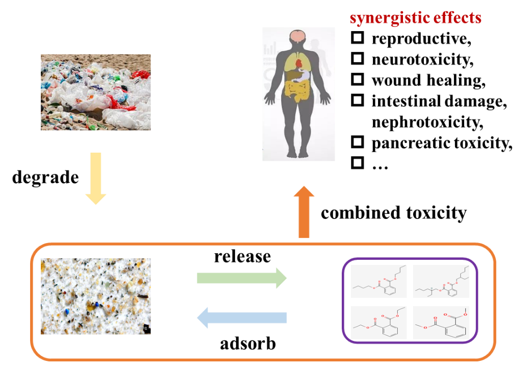 本综述重点关注 MPs 和 PAEs的共污染、浸出、吸附、相关性和联合毒性。在水、沉积物、水生生物、猪饲料、口罩、手套和垃圾渗透产生的液体废物中都发现了MPs 和 PAEs的共存现象。时间、温度、紫外线照射和 MPs 类型等因素都会影响 PAEs 在 MPs 上的浸出和吸附。MPs 和 PAEs 之间存在较强相关性, PAEs 可能可以作为 MPs 示踪剂。此外,MPs 和 PAEs 联合暴露产生协同毒性,可引起生殖毒性、神经毒性、肝毒性、肾毒性和其他毒性,主要由氧化应激过程介导。研究结果有助于制定更有效的策略来解决微塑料和 PAE 共存问题,减轻它们对人类健康的有害影响。