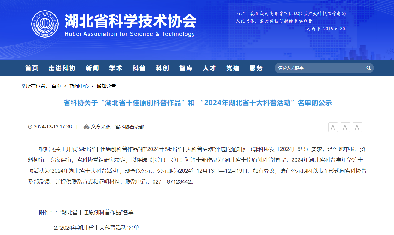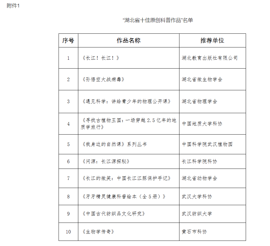 席德强教授的《生物学传奇》被评为“湖北省十佳原创科普作品”