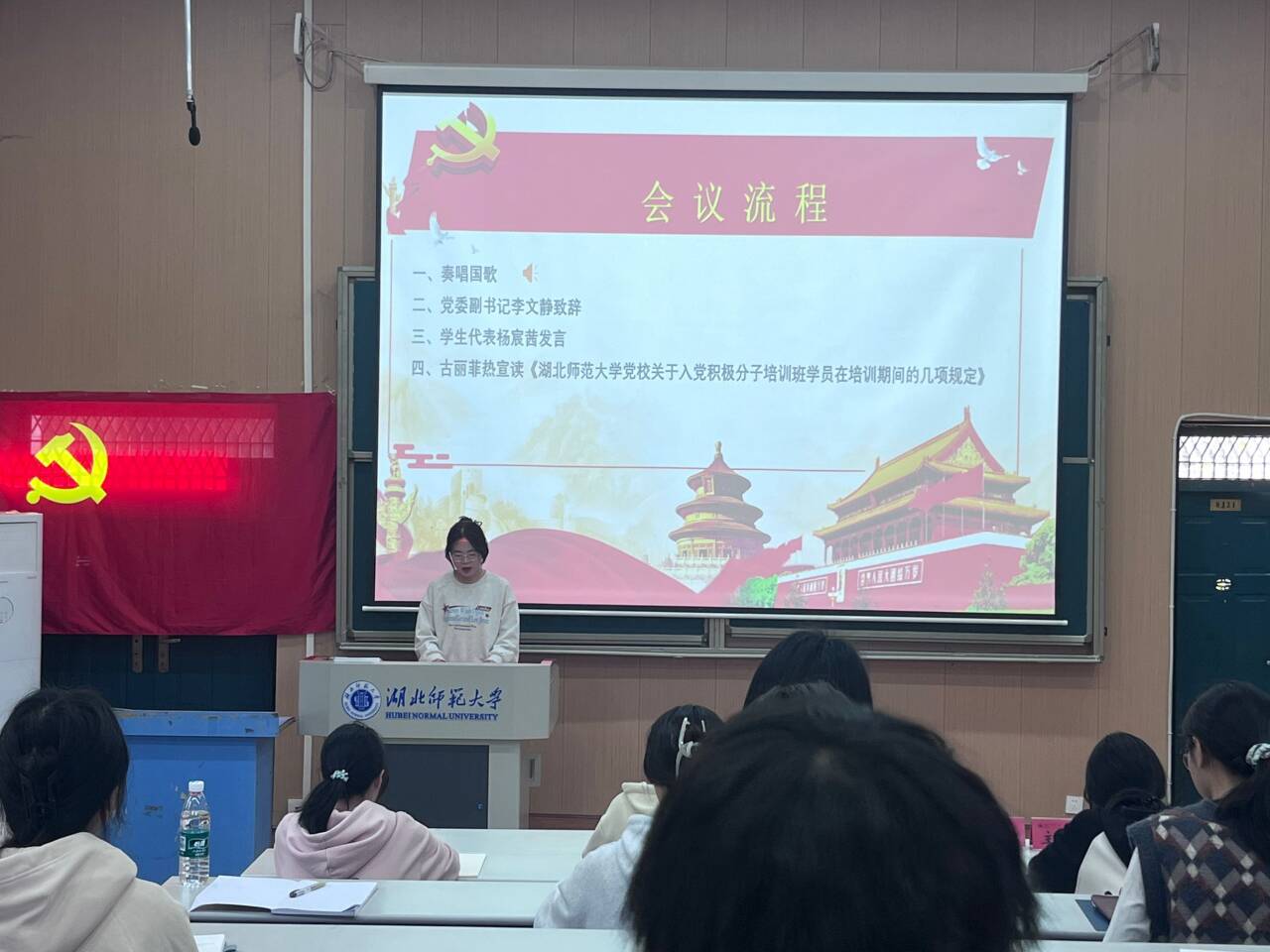 接着,积极分子代表杨宸茜在发言中表达了全体学员对参加此次培训班的热切期待和坚定决心。她表示,学员们将倍加珍惜这次难得的学习机会,严格遵守培训纪律,认真完成各项学习任务,深入学习党的理论知识,不断提高自身政治觉悟,努力做到学有所思、学有所悟、学有所成。