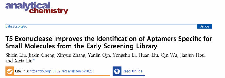 2025年4月,我院食品与环境安全监测与风险评估团队在国际TOP期刊《Analytical Chemistry》(中科院1区,IF: 6.8)发表题为“T5 exonuclease improves the identification of aptamers specific for small molecules from early screening library”的研究性论文。2023级硕士研究生刘世昕为第一作者,刘焕博士、李永淑博士、侯建军教授、吴琴副教授为共同作者,刘细霞教授为独立通讯作者。我院食用野生植物保育与利用湖北省重点实验室、特色野菜良种繁育与利用技术湖北省工程研究中心为独立通讯单位。