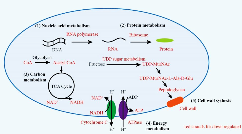 本研究系统评估了香椿(Toona sinensis)提取物对单增李斯特菌(Listeria monocytogenes ATCC 19112)的抗菌和抗生物膜作用,并通过蛋白质组学揭示了其抗菌机制。与此同时对香椿乙酸乙酯提取物自身的化学成份进行了检测并对其抗氧化活性进行了性能测试。所测试的香椿乙酸乙酯提取物对单增李斯特菌株MIC值为0.100mg/mL,生长曲线实验、活死细胞染色及扫描电镜观察结果进一步验证了上述发现。该提取物对生物膜抑制系数达到80%以上(P < 0.05),展示了卓越的抗生物膜效果。蛋白质组学分析揭示了其抗菌机制,涉及核酸、蛋白质、碳和能连代谢的破坏以及细胞壁合成。通过LC-MS技术从香椿乙酸乙酯提取物中共检测出58种化合物,其中的亚油酸、琥珀酸、槲皮素等物质可能有助于抗菌和抗生物膜特性,多酚和黄酮等物质则有利于抗氧化活性。此外提取物对自由基DPPH (2,2-diphenyl-1-picrylhydrazyl)和ABTS [2,2'-azino-bis (3-ethylbenzothiazoline-6-sulfonic acid)]的清除效果与同等浓度的抗坏血酸(Vc)相当甚至优于抗坏血酸。本研究报道了香椿提取物兼具抗单增李斯特菌及其生物膜的双重活性,并阐明相关作用机制,以及提取物自身的抗氧化活性,为食品安全领域的研究提供了重要依据。