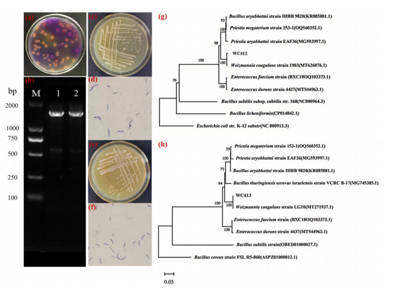 随着对可持续和无抗动物生产需求的增长,益生菌作为功能性饲料添加剂备受关注。本研究从泡菜水(一种尚未开发的益生菌筛选来源)中分离出新型凝结魏茨曼氏菌(Weizmannia coagulans)菌株WC412与WC413,并通过耐热性、耐酸性和耐胆盐测试,结合主成分分析(PCA)评估,筛选出环境抗逆性突出的WC412菌株。进一步的菌株WC412小鼠模型试验表明:中等剂量(1×10⁷ CFU·mL⁻¹)WC412可显著提升小鼠13%的体重增长(p<0.05),调节血清脂质谱,增强抗氧化酶活性及IgG/IL-2水平(p<0.05)。16S rDNA测序与KEGG分析揭示,饲喂中等剂量该菌株的小鼠肠道内特异性富集Fructilactobacillus和Limosilactobacillus等益生菌属,并促进短链脂肪酸合成相关代谢通路。研究结果证实凝结威茨曼氏菌WC412是一种能通过新型微生物群介导机制来改善动物生长性能和肠道健康的新型益生菌株。