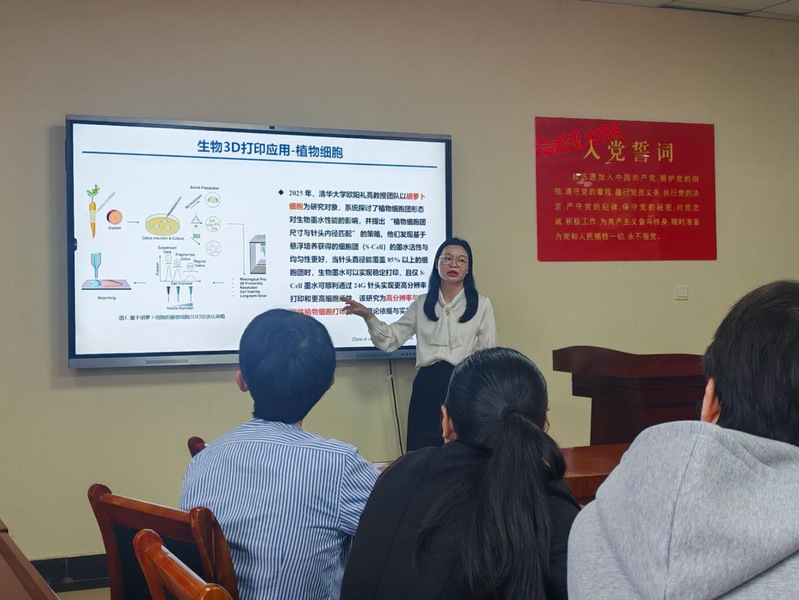 (通讯员 彭千芮)10月17日下午,我院2009级优秀校友、湖南师范大学陈海燕博士受邀回到学院,为师生带来一场题为《生物3D打印技术在前沿科研领域的探索应用》的学术报告。学院党委书记刘洋、相关科研团队教师及硕士研究生一同参加,报告会由党委副书记李文静主持。