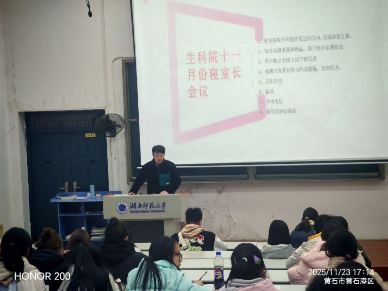 (通讯员 张良 王义洋)为深入贯彻落实学校安全稳定工作要求,切实提升学生寝室管理水平,增强寝室长责任意识与安全防范能力,11月23日下午5时,6686在一站式社区8J11教室组织召开2023级、2024级寝室长专题会议。学院辅导员张良老师主持会议,全体寝室长参加会议。