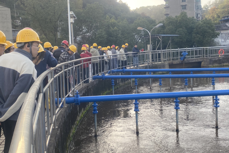 随后,大家前往黄石青山湖污水处理厂,开启环保治理领域的实践学习之旅。青山湖污水处理厂承载着黄石港城区的生活污水及工业废水处理重任。在污水处理厂技术人员的引导下,大家沿着污水处理工艺流程线路,依次参观了粗格栅、细格栅、涡流沉砂池、A2/O氧化沟、二沉池及接触消毒池等关键处理单元。