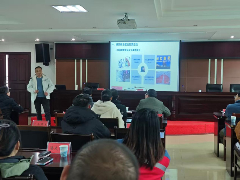 (通讯员 余翔)为深入贯彻落实国家食品安全战略,强化食品工业诚信管理,12月4日下午,我院余翔博士应黄石市经济和信息化局邀请,在2025年黄石市食品工业企业诚信体系建设专题培训班上,围绕《食品工业企业诚信管理体系》的实际应用,作了一场深入浅出的专题讲座,本次讲座由黄石市经济和信息化局刘文明副局长主持。