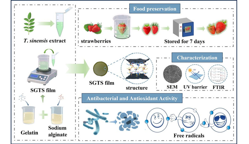 该研究成功制备出基于海藻酸钠–明胶并富含香椿(Toona sinensis)提取物的生物活性薄膜(SGTS 膜)。研究结果显示,该薄膜在抗氧化、抗菌及果蔬保鲜方面表现出显著优势,为绿色食品包装材料的创新提供了新路径。团队通过添加不同浓度的香椿提取物(1:20、1:10、1:5),显著改善了薄膜的结构与光学性质。新型薄膜不仅具备更高的柔韧性和更强的紫外阻隔能力,还表现出良好的亲水性。在生物活性方面,SGTS 膜具有高水平的天然抗氧化能力,DPPH 和 ABTS⁺ 自由基清除率均超过 90%。在抗菌测试中,SGTS 膜对大肠杆菌和金黄色葡萄球菌均表现出增强的抑制作用。此外,在草莓储藏实验中,该薄膜能有效保持果实外观、硬度、pH 和感官品质,并显著降低储藏期间的失重。研究团队表示,该类可降解活性薄膜为替代传统塑料包装提供了有前景的绿色解决方案,未来有望在果蔬保鲜、食品包装等领域得到推广应用。