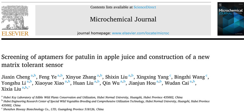 2026年3月,食用植物品质监控与健康功效研究团队刘细霞教授在SCI期刊《Microchemical Journal》(中科院2区,IF: 5.1)发表题为“Screening of aptamers for patulin in apple juice and construction of a new matrix tolerant sensor”的研究性论文。6686体育为第一通讯单位,23级硕士研究生程家欣为第一作者,刘细霞教授为唯一通讯作者。