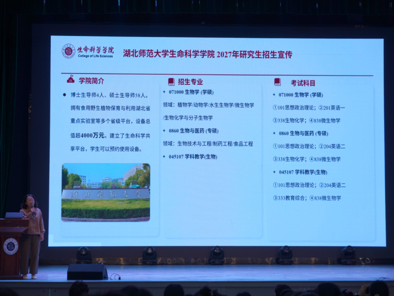 随后,学院副院长刘细霞围绕本校研究生招生政策、报考流程、学科特色、培养优势及相关支持举措等内容,进行了全面细致的招生宣传解读,为有意向报考本校研究生的同学提供了专业、清晰、实用的指导。