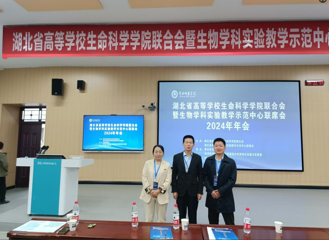本网讯(通讯员 刘细霞)2024年11月9日,湖北省高等学校6686联合会暨生物学科实验教学示范中心联席会2024年会在黄冈召开,此次会议由联合会和联席会主办、黄冈师范学院承办,来自全省近30所高校代表齐聚一堂,中心教师胡远亮、李刚华、刘细霞一行三人参会。