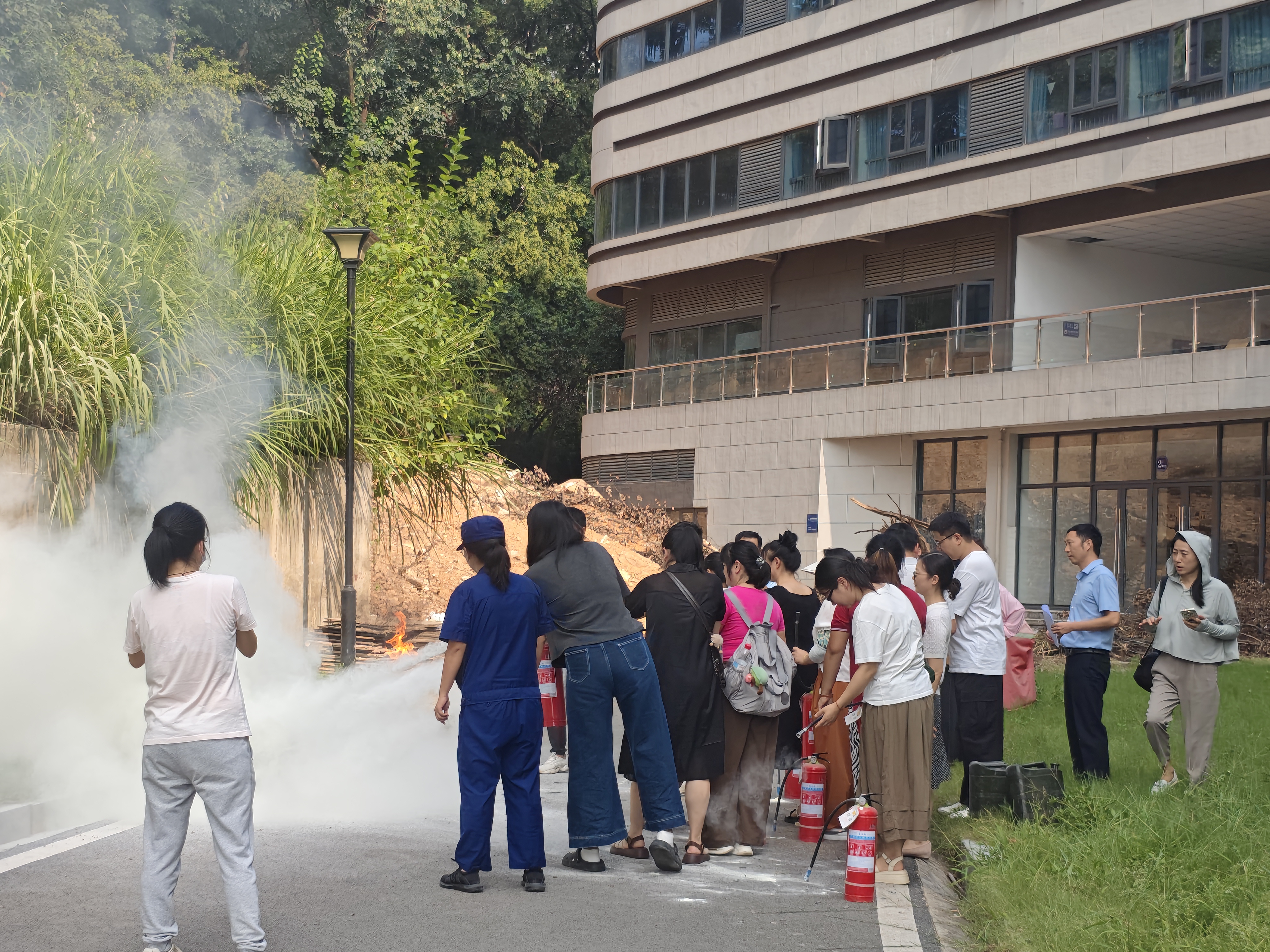 本网讯(通讯员 汪平权)2025年9月2日,在学校大数据中心楼前,学校保卫处与国有资产与实验室管理处联合组织开展消防安全演练,示范中心全体实验室管理教师参加此次培训并完成灭火器实操演练。