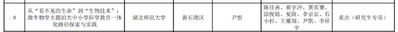 近日,黄石市教育局教育科学规划领导小组办公室公布了2025年度教育科学规划课题立项评审结果,实验教学示范中心郭倩老师主持的《一体化视域下高中-高校联动的生物竞赛育人体系构建与实践》课题成功获批高校组重点项目资助。24级研究生尹想主持的《从“看不见的生命”到“生物技术”:微生物学主题的大中小学学科教育一体化路径探索与实践》课题,成功获批(研究生专项)重点项目资助。