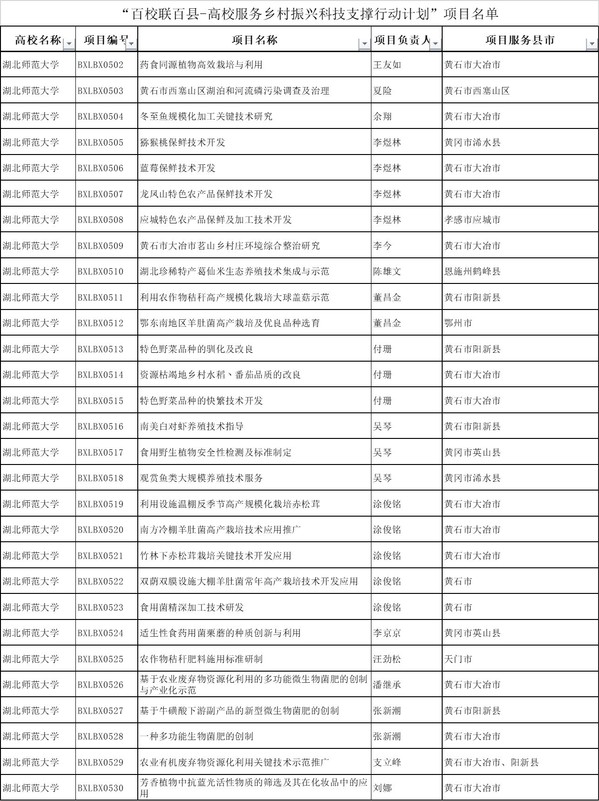 经高校推荐、湖北省教育厅评审,共确定了1502个高校科技支撑服务乡村振兴项目,涉及高校101所,覆盖县市104个,实现了全战线参与,全县域覆盖。其中我校共有52个获批立项,立项数排名第五。重点实验室获批立项29项,名列全校榜首。