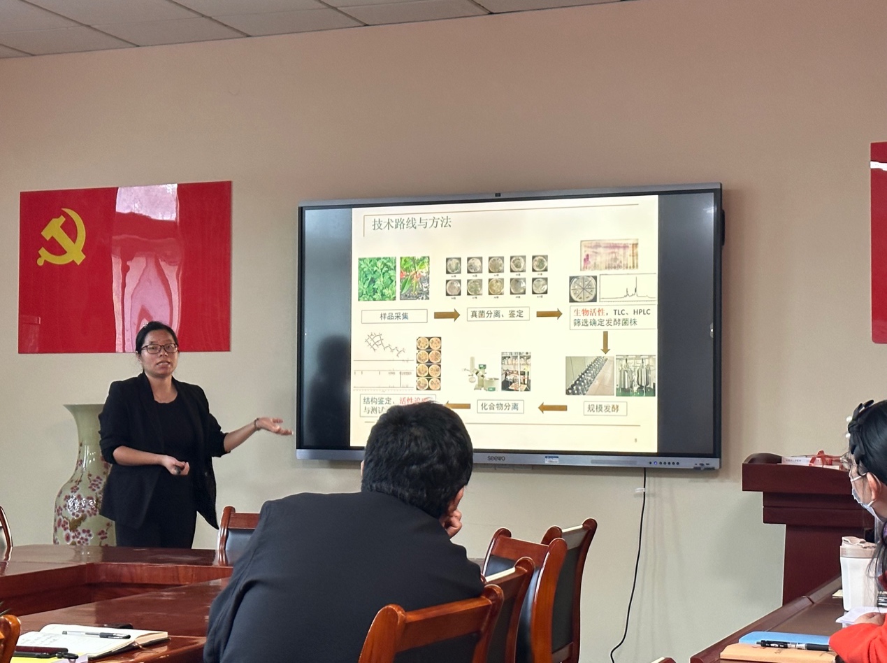 石小杉作《药用植物来源真菌次级代谢产物挖掘及抗水产病害菌活性研究》报告。据悉,中国水产养殖业规模巨大,但目前困扰产量的首要问题就是缺少有效的抗菌类药物。为了寻找新型天然抗菌药物,石小杉老师进行了“六步走”策略研究,讲述细致,条理清晰。