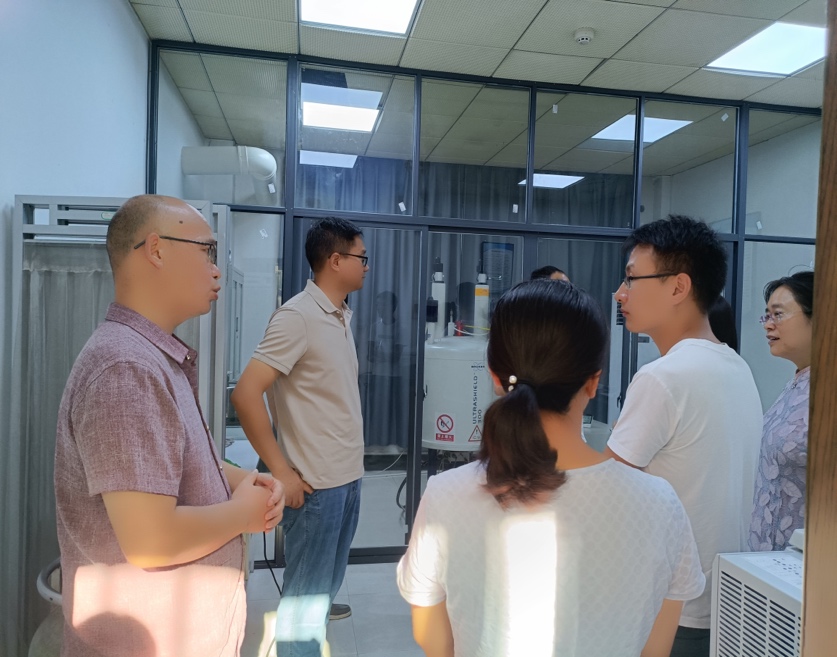 2024年8月20日,劲牌研究院分析测试研究中心李强主任一行来我院工程中心就大型仪器共享进行调研交流,国有资产与实验室管理处陈晨副处长、我院胡远亮院长、李刚华副院长、刘细霞博士、张众博士参加座谈会。