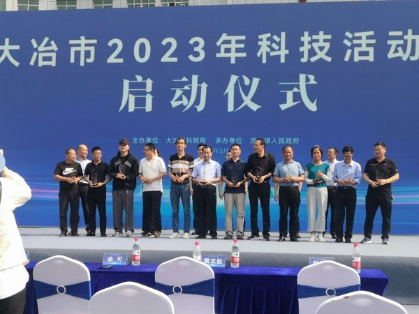 5月19日上午,我院科技特派员李煜林博士、李伟智博士受邀赴灵乡镇参加大冶市2023年科技活动周启动仪式。在启动仪式上,大冶市科技局宣读了获得2022年优秀科技特派员名单,我院陈亮博士获大冶市科技局2022年优秀科技特派员,李伟智博士代表陈亮博士上台领奖。随后,李煜林博士代表学院和大冶市林丰生态农业有限公司签许产学研合作协议、共建实习基地协议。