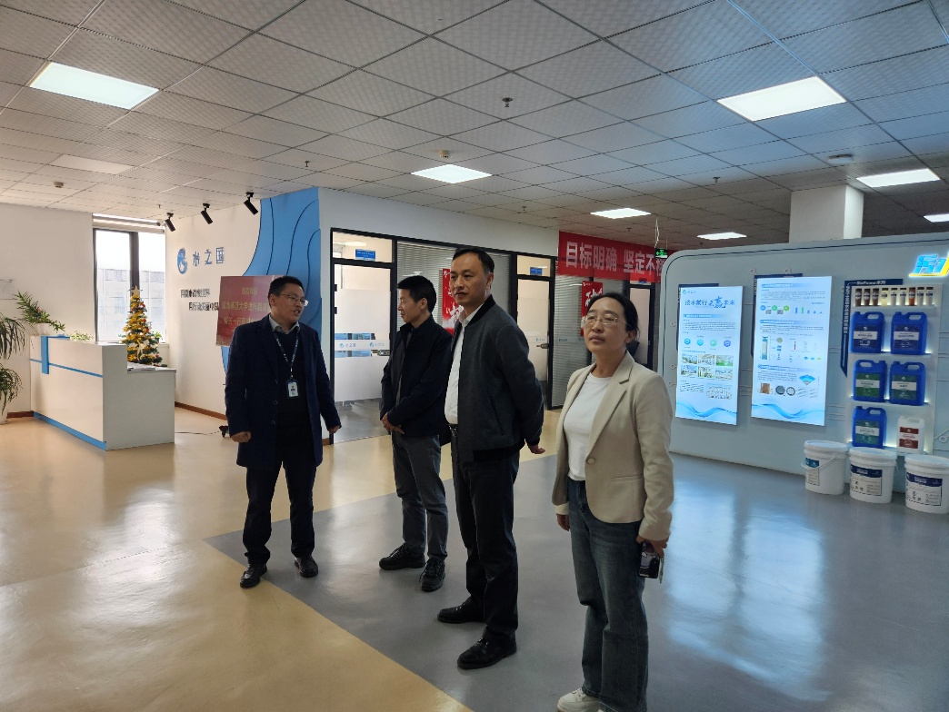 在吴定心博士的陪同下,胡远亮一行首先参观了企业展厅,深入了解公司从初创团队到行业领军企业的发展历程,以及"用微小改变世界,用行动美丽中国"的核心使命。在研发实验室内,科研人员现场演示了微生态净水技术、纳米膜材料污染治理等前沿项目,展现了企业以科技创新驱动生态治理的实践成果。